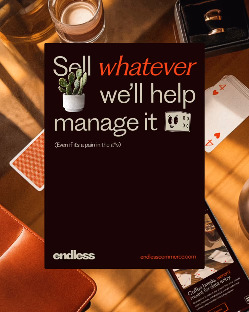 Endless Commerce came to us with a mission: make the back end of commerce feel as bold as the brands it powers. Together, we ran a four-week MVE Sprint to set the tone, look, and feel for their launch—building a brand that’s confident, playful, and built for operators who don’t do ordinary.
